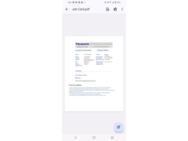 I have complaint raised on the Panasonic custmer care 3/3/2024 yet 4/3/2024 mechanic visiting myy home product checking but also available in warranty card and extend warranty card but warranty card is also 2 years expired and extend warranty card is available total product in 8 years and in their complaint cancelled but no informat